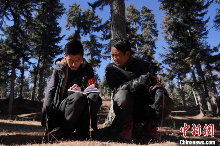 “每天和同事至少要巡護兩(liang) 趟。早些年從(cong) 管護站到林場隻能靠步行,早晨天不亮就出發。現在,每次巡邏都能和會(hui) 騎摩托車的同事一起,方便多了。”桑傑加沿著蜿蜒的小路,往林場深處走去,巡護中,看見一棵樹體(ti) 上有大片樹皮開裂,桑傑加立即上前檢查是否有凍害、蟲口等。