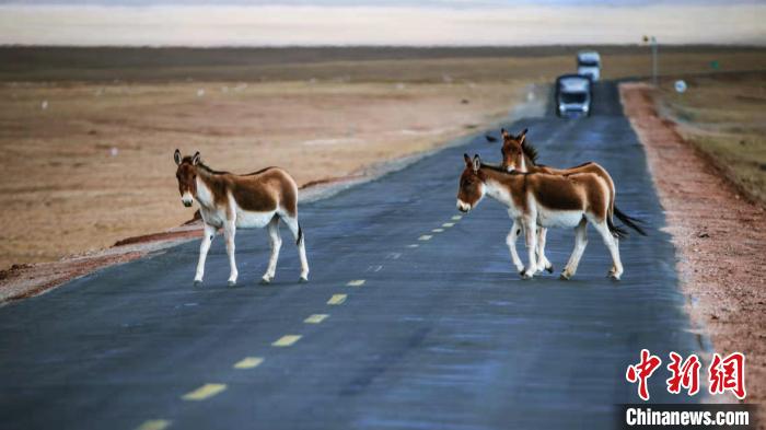 圖為(wei) 藏野驢穿越青藏公路。何啟金 攝
