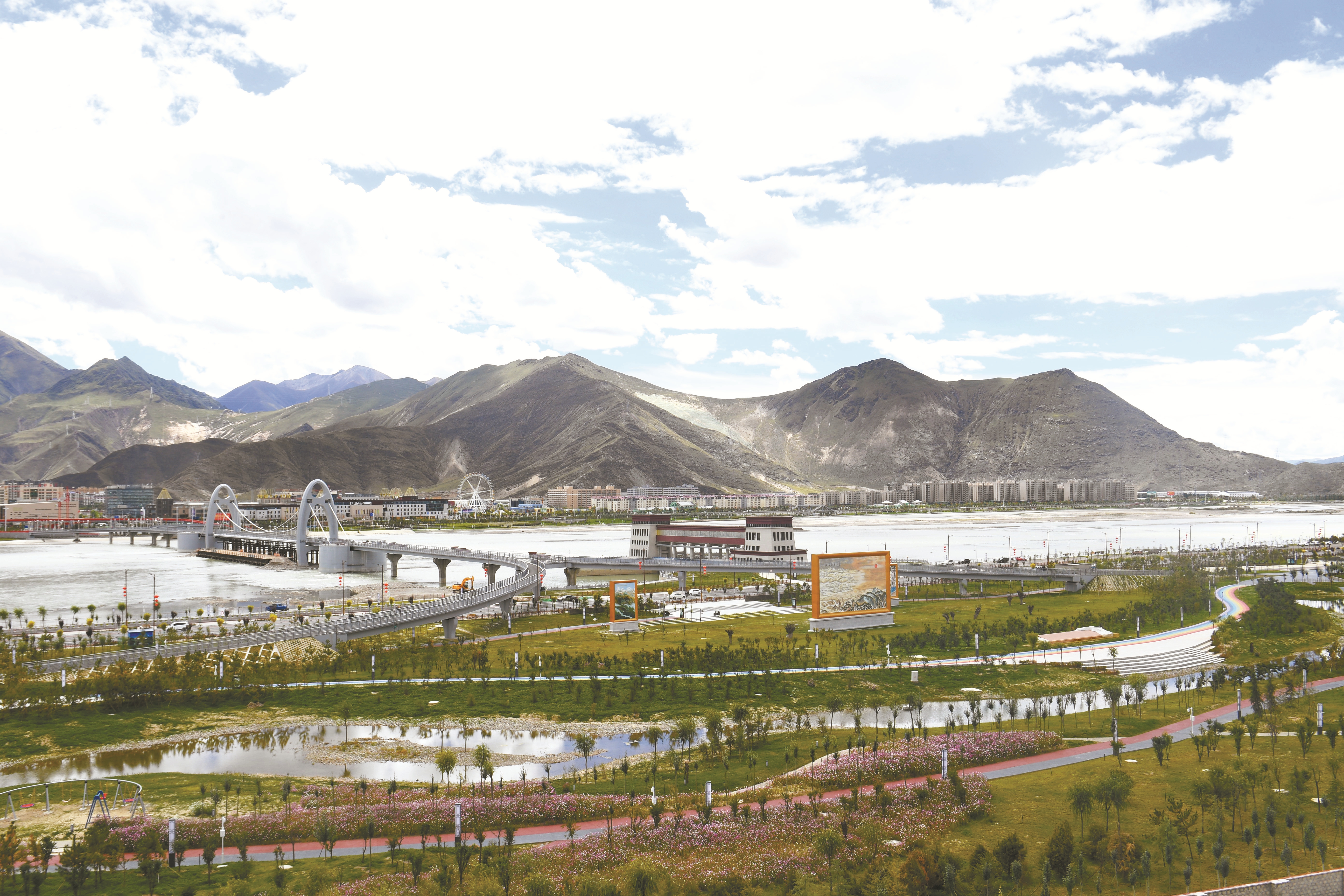 圖為(wei) 綠水青山環繞中的拉薩中華文化主題公園。 拉薩融媒記者 巴桑次仁攝