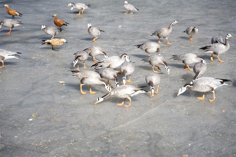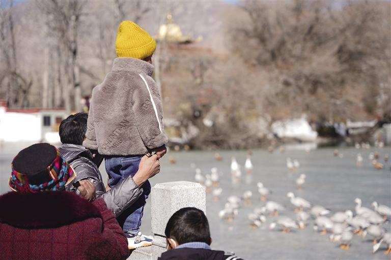 如果你想觀賞候鳥,可以前往拉薩3號壩橋,清澈的水麵上候鳥聚集成群。米瑪頓珠和老伴站立在橋麵上,靜靜欣賞著候鳥,時不時還有候鳥飛過他們(men) 的頭頂,在半空中盤旋一番,再落到水麵。