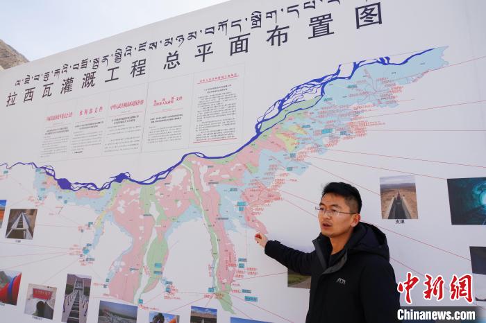 圖為(wei) 貴德縣拉西瓦灌溉工程管理局副局長方軍(jun) 介紹工程詳情。 馬銘言 攝