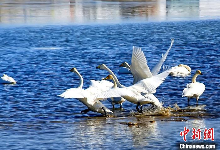 圖為(wei) 察爾汗鹽湖濕地的大天鵝。 格爾木市委宣傳(chuan) 部 供圖