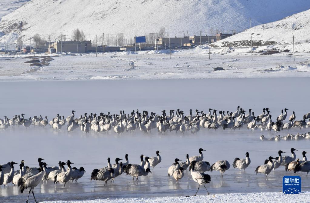 在林周縣卡孜鄉(xiang) 投食點,成群的黑頸鶴正在冬日的陽光下覓食。林周縣檢察院檢察長索朗晉美說:“為(wei) 黑頸鶴投食活動,有助於(yu) 進一步推動形成‘西藏雅魯藏布江中遊河穀黑頸鶴國家級自然保護區’生態環境保護合力,通過檢察幹警的實際行動讓人與(yu) 自然和諧共生的美好畫卷充分展現。