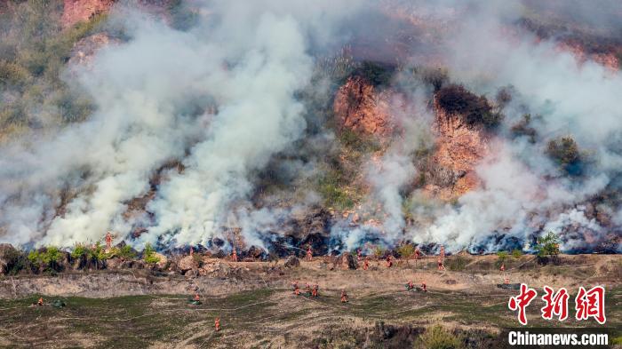 圖為(wei) 3月2日,雲(yun) 南森林草原火災應急處置聯合實戰演練現場。 雲(yun) 南省森林消防總隊 攝
