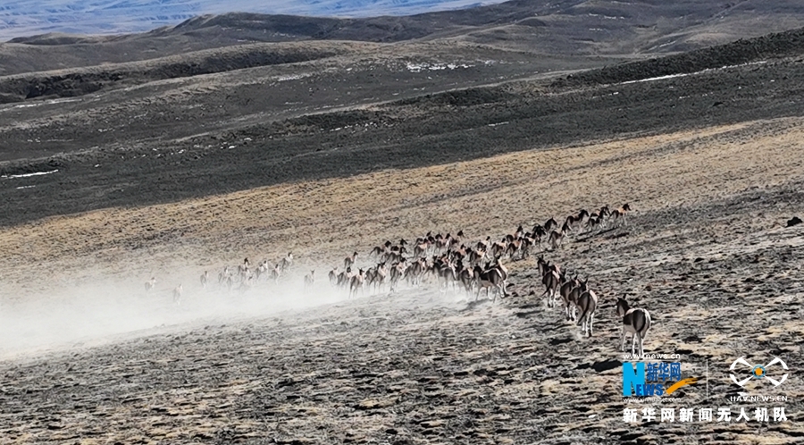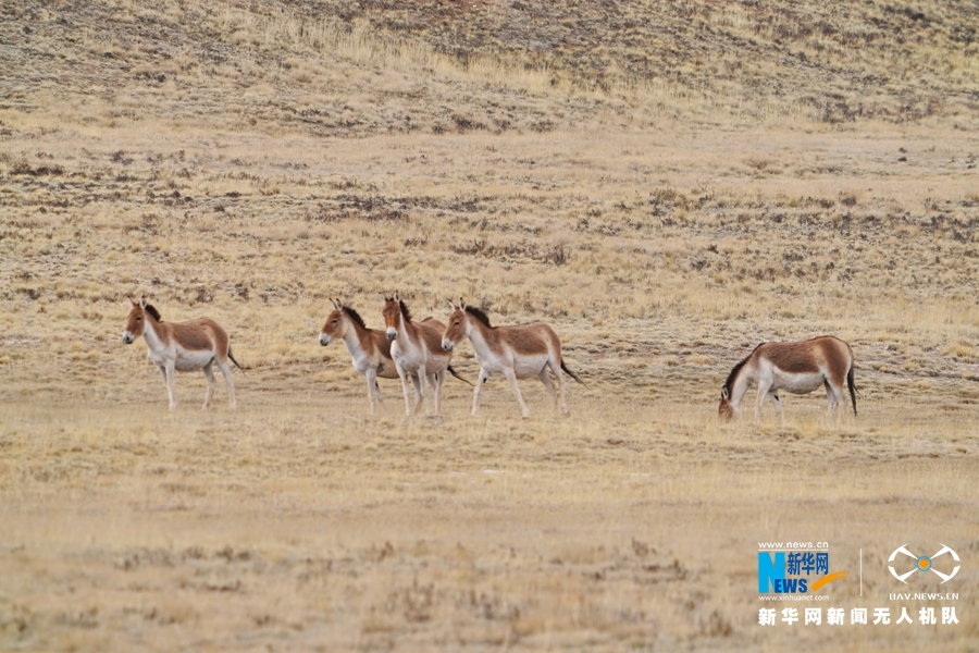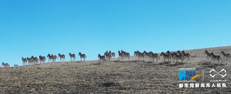 祁連山下,甘肅省張掖市肅南裕固族自治縣祁豐(feng) 藏族鄉(xiang) 禁牧區內(nei) ,二百餘(yu) 隻藏野驢或自由奔跑,或覓食、嬉戲。