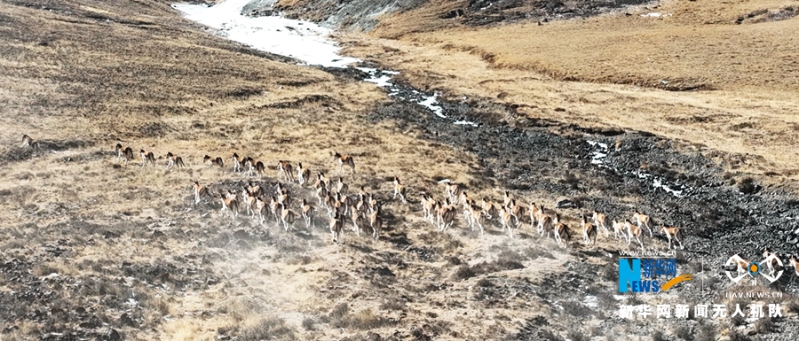 兩百餘隻藏野驢現身祁連山下