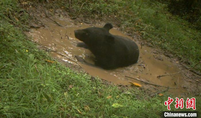 獨自洗澡的黑熊 寶興(xing) 縣委宣傳(chuan) 部 供圖
