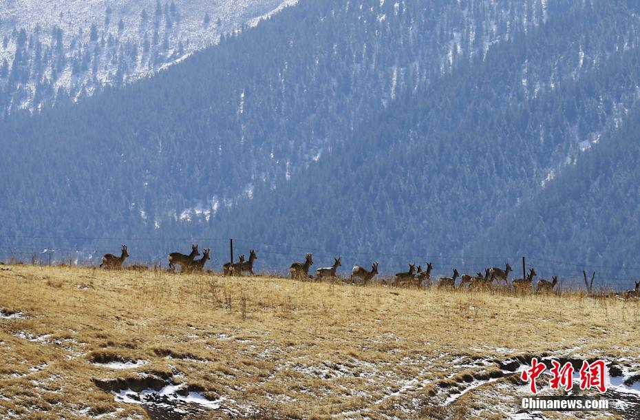 3月16日,成群的矮鹿在青海省海北藏族自治州祁連山國家公園青海片區草場上嬉戲。祁連山國家公園地處中國青海、甘肅兩(liang) 省交界,總麵積5.02萬(wan) 平方千米,其中青海片區1.58萬(wan) 平方千米。近年來,隨著當地生態環境持續改善,祁連山國家公園青海片區珍稀野生動物種群數量不斷增加。 中新社記者 馬銘言 攝