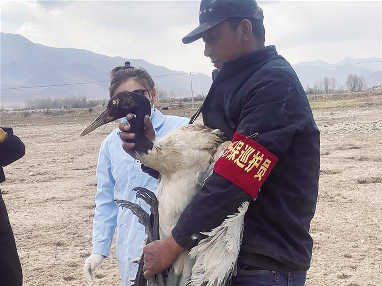 巡護員救助受傷(shang) 黑頸鶴。文/圖 記者 王靜