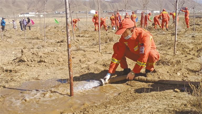 時值四月,鶯初解語 ,最是一年春好處。日喀則市森林消防大隊積極響應駐地黨(dang) 委政府號召,組織50名消防救援人員前往日喀則市桑珠孜區曲美鄉(xiang) 開展義(yi) 務植樹活動,用實際行動美化環境、綠化家園,與(yu) 駐地群眾(zhong) 一同守護綠水青山,進一步貫徹落實習(xi) 近平新時代中國特色社會(hui) 主義(yi) 生態文明和“綠水青山就是金山銀山”理念,為(wei) 保護生態環境貢獻出力量。
