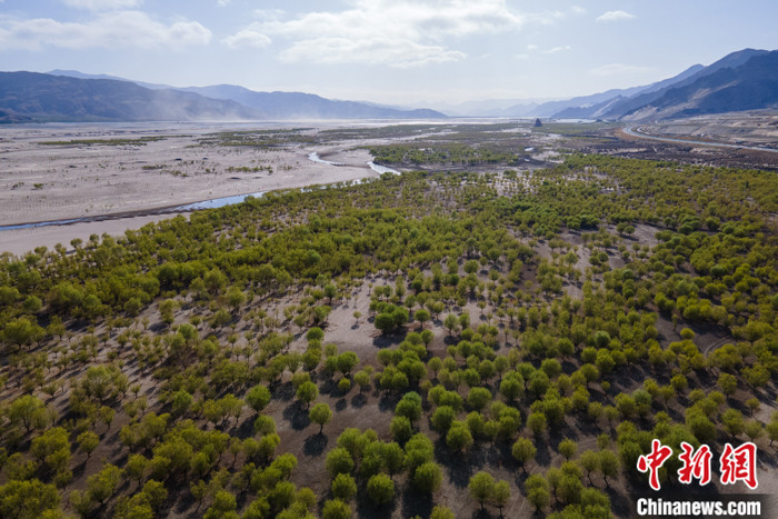 圖為(wei) 4月18日,航拍雅魯藏布江中遊北岸成片的林地。(無人機照片) 中新社記者 江飛波 攝