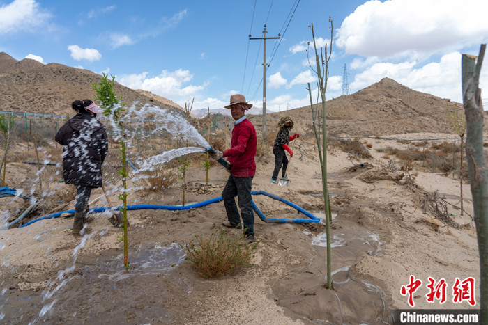4月還是西藏的植樹季。記者沿雅魯藏布江而上,在桑耶寺上遊十餘(yu) 公裏處,鬆卡村十餘(yu) 位農(nong) 牧民正在一片荒灘上挖坑、栽種楊樹、澆水。“這個(ge) 地方去年就開始種樹了,沙地種樹太難,一些樹沒有成活,今年再補種。”負責澆水的紮西傑布說,該荒灘被一家綠化公司承包,他們(men) 是受雇於(yu) 公司。