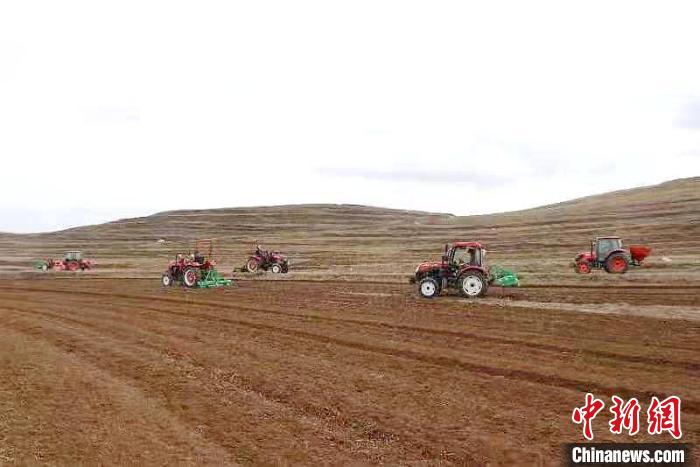 圖為(wei) 同仁市黃乃亥鄉(xiang) 正在機械化種植黑青稞。 天津援青指揮部供圖