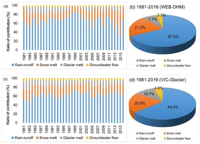 王磊表示,依托監測網絡和其他多源數據,研究團隊生成了1981-2019年這38年內(nei) 雅魯藏布江流域高時空分辨率降水數據,在此基礎上進一步通過對比、綜合主流冰凍圈水文模型的徑流組分模擬,研究得出的結果顯示,雅魯藏布江流域(奴下水文站以上)新的降雨、融雪、冰川融化和地下水補給分別占總徑流的66%、21%、9%和4%。
