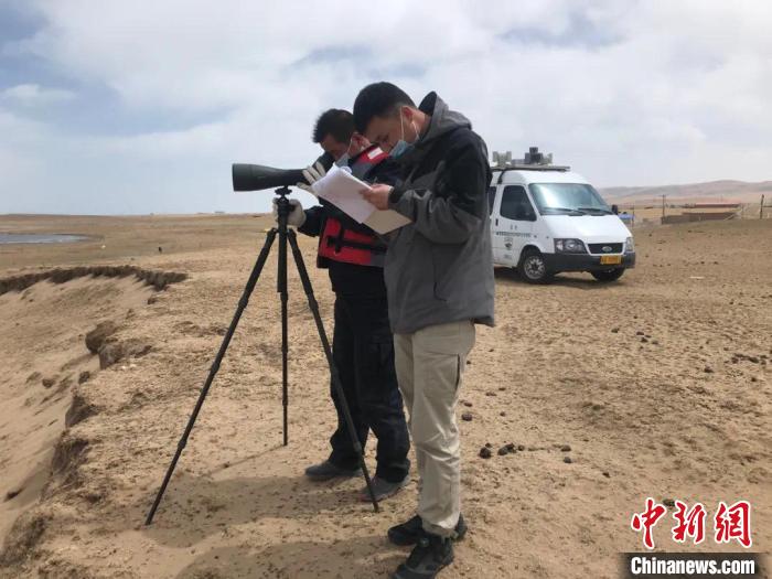 圖為(wei) 工作人員正在開展監測工作。 青海湖國家級自然保護區管理局供圖