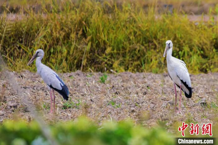 稻田裏的鉗嘴鸛。 周學峰 攝