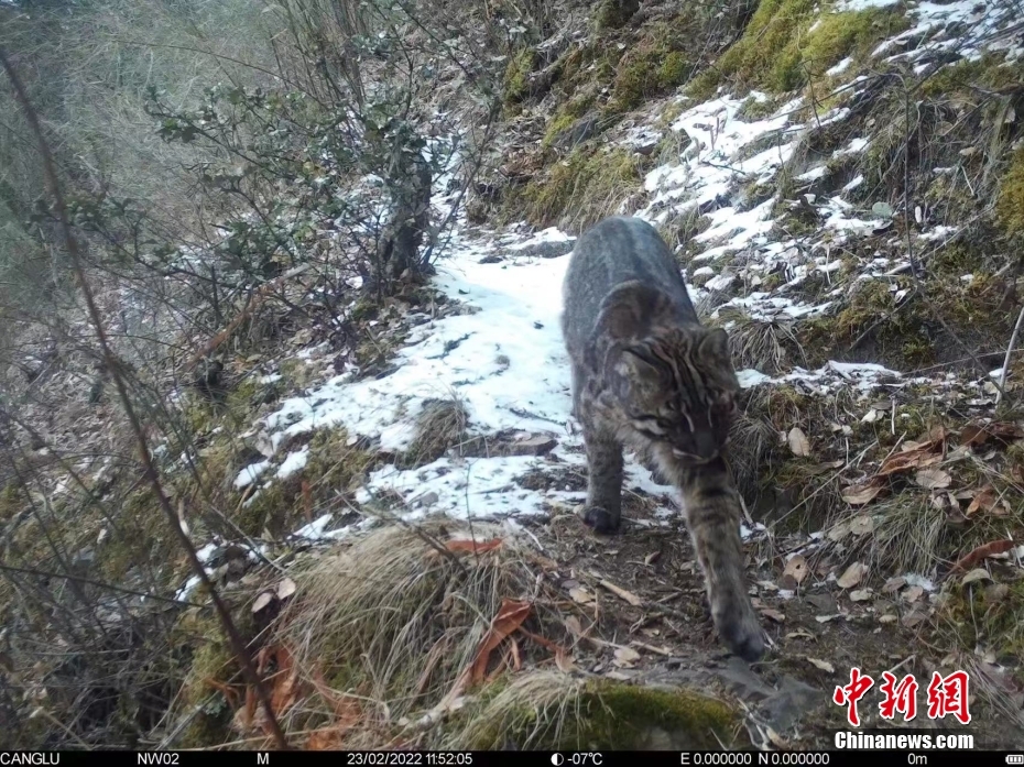 5月17日,記者從(cong) 西藏自治區那曲市林業(ye) 和草原局獲悉,在該局和山水自然保護中心聯合開展的那曲生物多樣性調查項目中,首次在那曲市嘉黎縣記錄到了國家一級保護動物金貓的活動影像,填補了那曲市的金貓分布空白,並且4300米也是迄今為(wei) 止金貓在全球的最高分布海拔記錄。圖為(wei) 2022年2月紅外相機拍攝到的金貓影像。 中新社發 山水自然保護中心 供圖