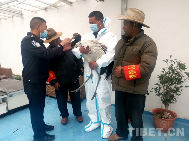 西藏阿裏馬攸橋邊境檢查站救助國家一級保護動物丹頂鶴