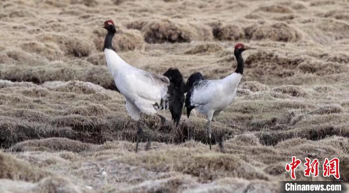 “鳥類大熊貓”黑頸鶴群“落戶”祁連山木裏濕地