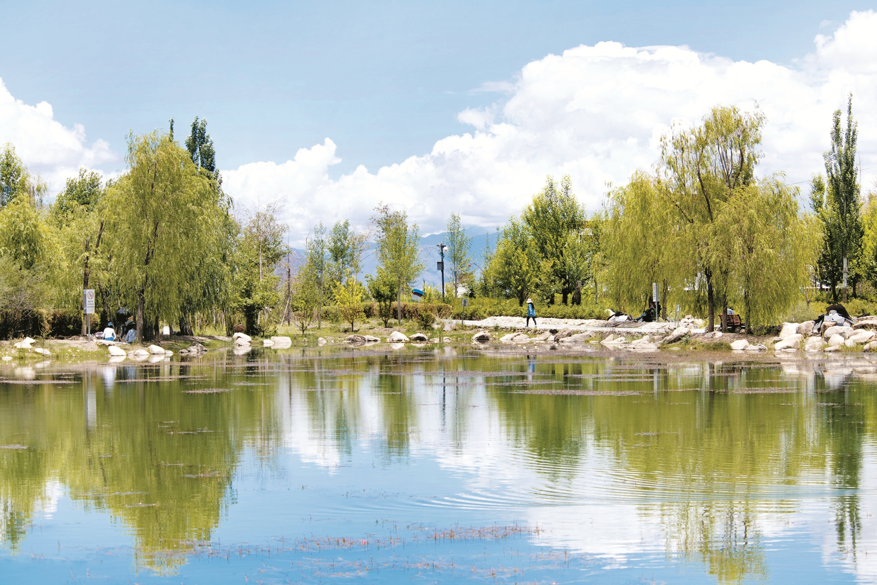 圖為(wei) 遊客正在鏡湖林卡遊玩。拉薩融媒記者 玉珠多傑攝