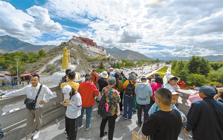 圖為(wei) 遊客在布達拉宮觀景台欣賞美景。記者 旦增蘭(lan) 澤 攝
