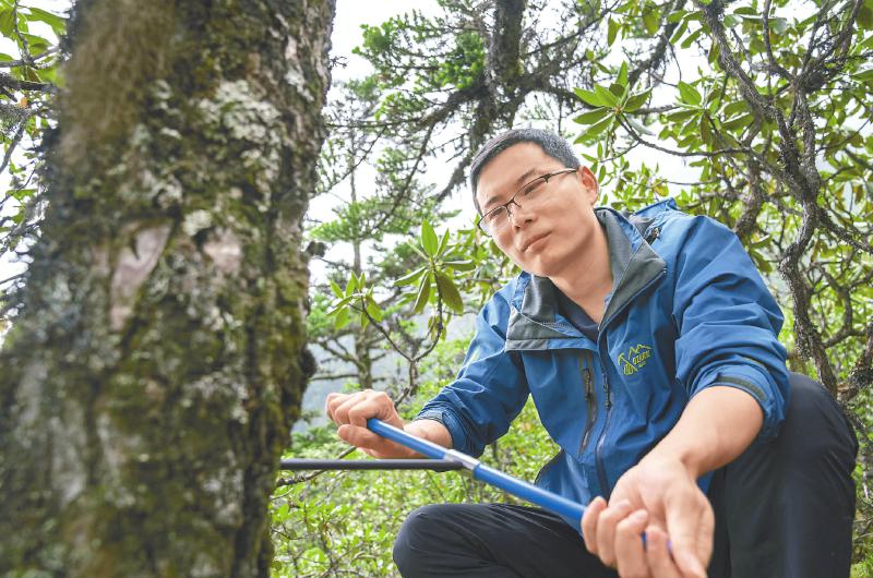 中科院成都山地所研究員王文誌在采集冷杉的年輪樣本。四川日報全媒體(ti) 記者 李強 攝