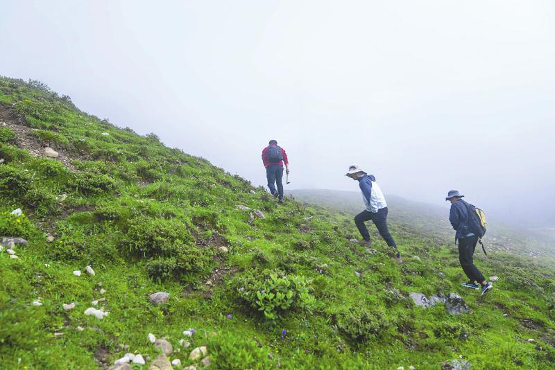 從(cong) 磨西鎮出發,沿著瀘定通往康定的434省道蜿蜒而上。車行一小時後,海拔上升到3400米。這裏是雅家埂的著名景區雅家情海。研究人員顧不上打卡景點,開始往海拔3700米以上的林線進發。