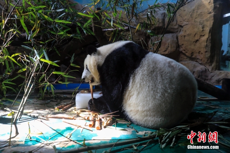 7月6日,四川成都動物園,一隻大熊貓在冰塊旁吃竹筍。當日,成都市高溫天氣持續。 [詳細] -