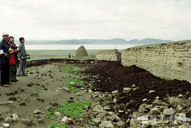 這是人們(men) 在參觀雙湖辦事處前身的申紮縣加林工作組遺址。它位於(yu) 加林山下的俄東(dong) 溝(唐召明2001年攝)