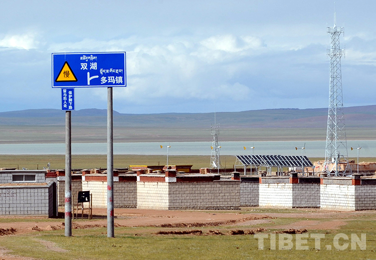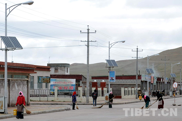 當時,經過創業(ye) 者三十多年的開發建設,雙湖鎮中心已有了一條筆直寬敞的水泥路,道路兩(liang) 旁還有漂亮的太陽能路燈和垃圾箱,黨(dang) 政辦公樓、敬老院、職工活動中心、幼兒(er) 園、普若崗日賓館、加油站等新建築拔地而起,並建起了大型的太陽能光伏電站。