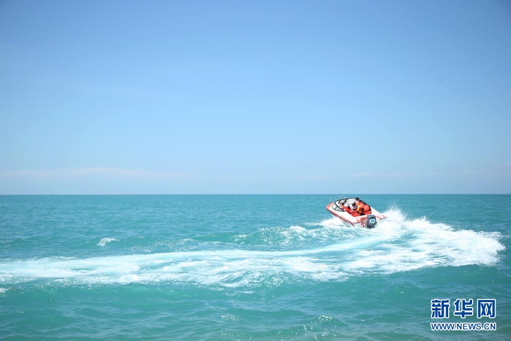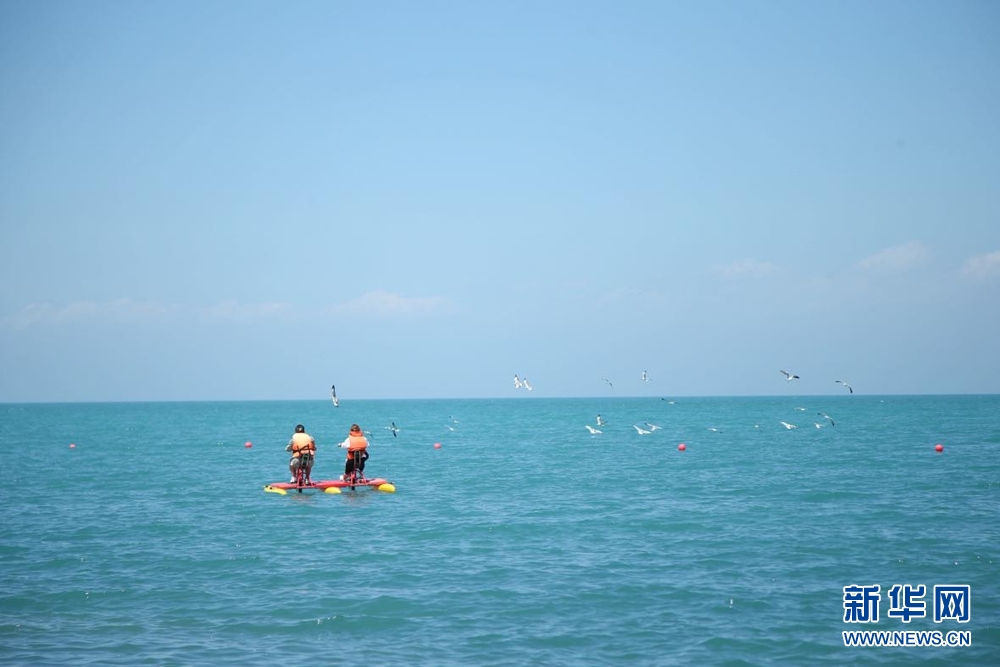 8月8日,遊客在青海湖體(ti) 驗水上娛樂(le) 項目。新華網 馬洪婷 攝