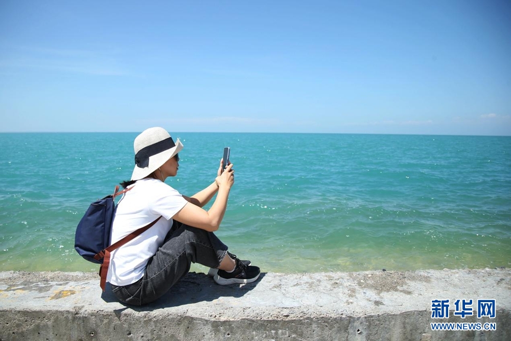 8月8日,遊客在青海湖畔遊玩。新華網 馬洪婷 攝
