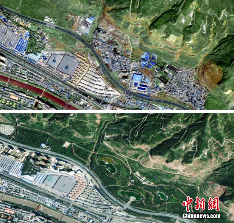 9月27日,中新網記者從(cong) 青海省地質調查院衛星遙感中心(自然資源青海衛星應用技術中心)獲悉,該中心通過十年前後(2013年和2022年)高分辨率衛星影像的對比,特推出“衛星見證青海這十年”係列,多角度展示十年來包括青海省西寧市在內(nei) 的相關(guan) 地區,在城市建設、生態保護、產(chan) 業(ye) 發展、精準脫貧、民生福祉等各方麵取得的變化。圖為(wei) 西寧市2013年(上圖)和2022年(下圖)北山綠化。 王佳 攝