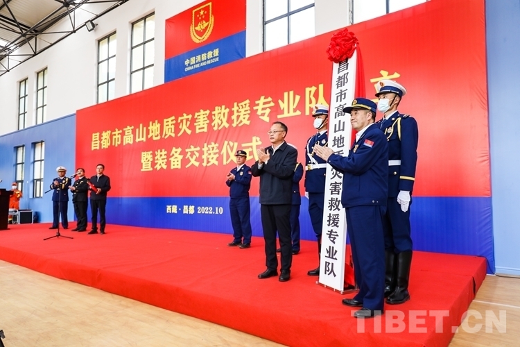 圖為(wei) 昌都市高山地質災害救援專(zhuan) 業(ye) 隊成立暨裝備交接儀(yi) 式現場