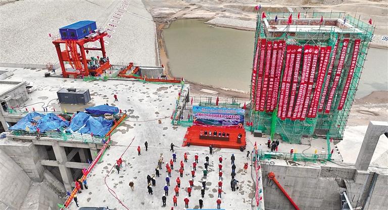 圖為(wei) 湘河水利樞紐及配套灌區工程下閘蓄水現場。通訊員 趙亮 旦增羅布 記者 紮西頓珠 攝