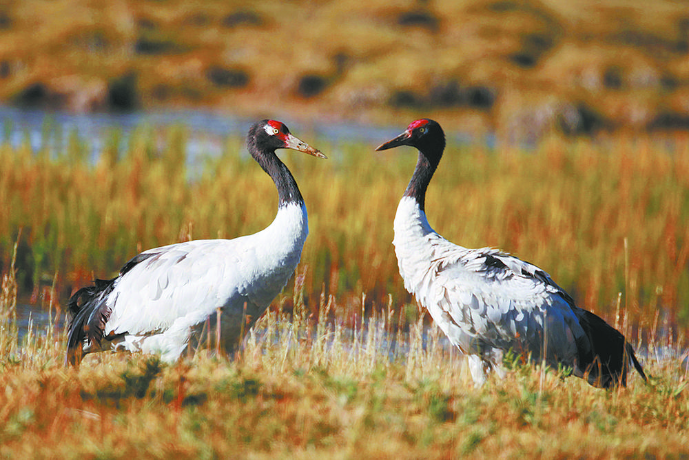 黑頸鶴“夫妻”。青海湖國家級自然保護區管理局供圖