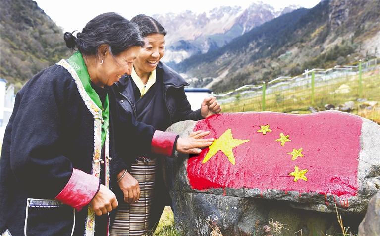 圖為(wei) “家是玉麥,國是中國”,人人爭(zheng) 做神聖國土守護者、幸福家園建設者。圖為(wei) “七一勳章”獲得者卓嘎和同為(wei) “時代楷模”的妹妹央宗抵邊巡邏。