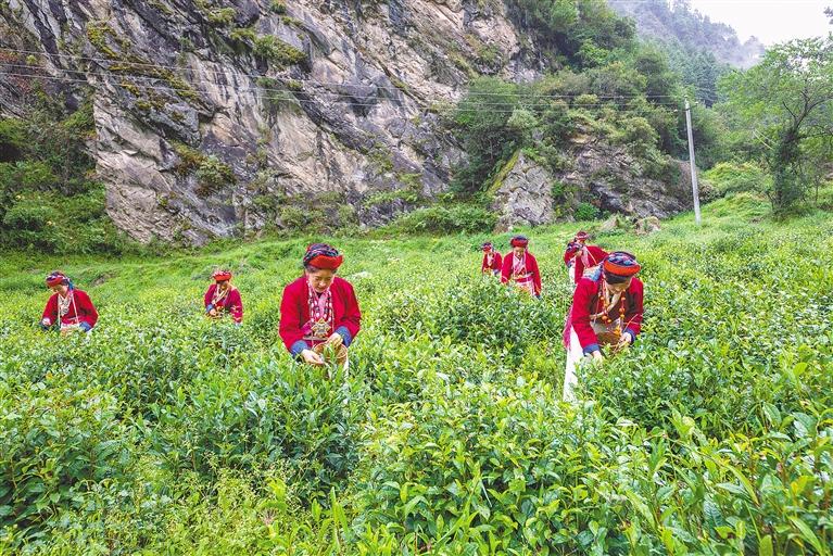 圖為(wei) 加快建設邊境沿線發展帶,邊境一線各族群眾(zhong) 生活有保障、致富有渠道、守邊有動力、發展有支撐。圖為(wei) 西藏自治區錯那縣茶葉專(zhuan) 業(ye) 合作社農(nong) 牧民采摘新茶。