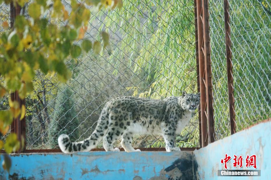 10月23日,國際雪豹日。在西寧野生動物園內(nei) ,雪豹們(men) 悠然閑坐,時而張嘴打瞌睡,時而爬高上低展示“功夫”,萌態十足。圖為(wei) 西寧野生動物園內(nei) ,一隻雪豹爬上圍牆散步。 馬銘言 攝