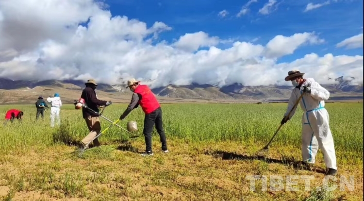 圖為(wei) 國家牧草產(chan) 業(ye) 技術體(ti) 係拉薩綜合試驗站當雄示範點青幹草秋收搶收工作(海拔4660米)