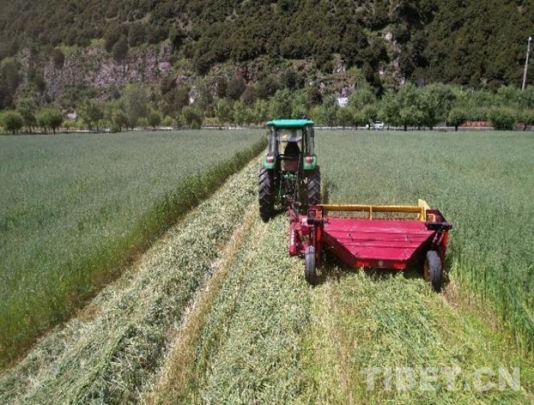 拉薩市墨竹工卡縣紮雪鄉其朗村村民在收割牧草