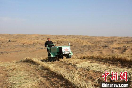 圖為(wei) 甘肅省治沙研究所科研團隊曆時6年研發的小型“手扶式沙障機”,大大減輕了草方格沙障鋪設的勞動強度。 甘肅省治沙研究所供圖