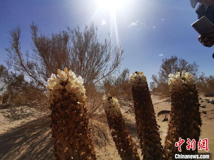2020年5月16日,甘肅酒泉市金塔縣境內(nei) 沙漠裏,梭梭林下的肉蓯蓉花開。 殷春永 攝