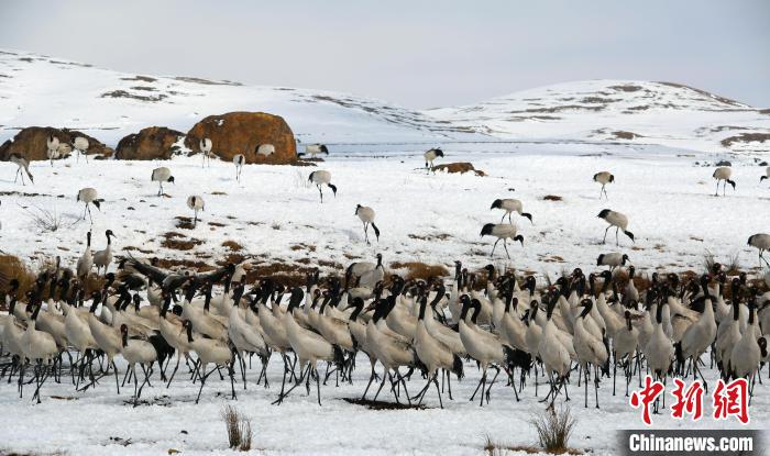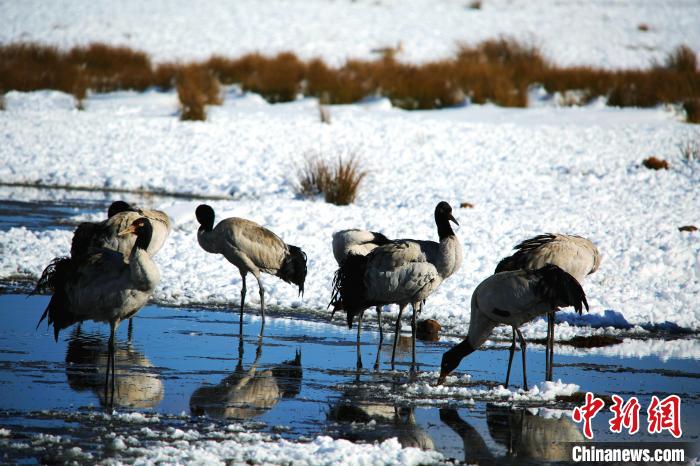 圖為(wei) 在雲(yun) 南昭通大山包過冬的黑頸鶴。(資料圖) 吳太平 攝