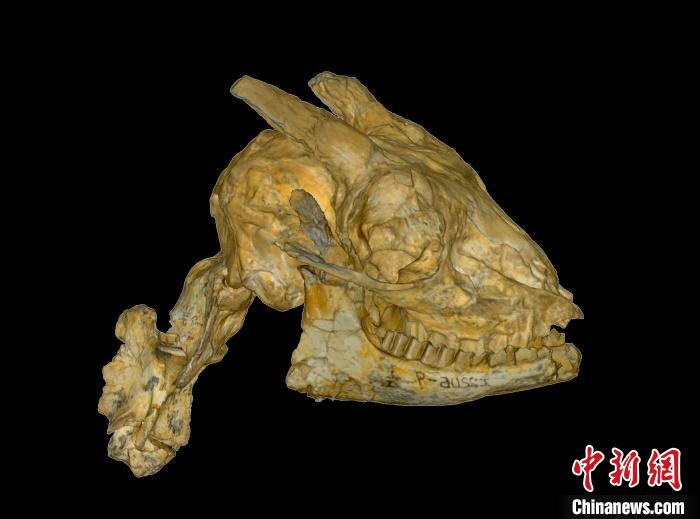 鄧氏臨(lin) 夏羚的頭骨和頸椎化石標本。 中科院古脊椎所 供圖