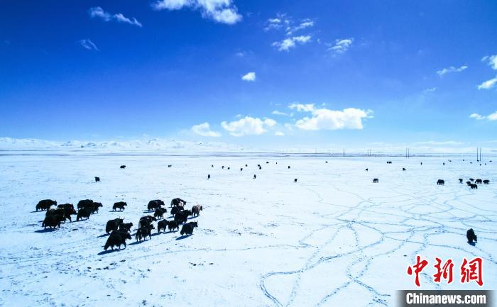 圖為(wei) 黃河源頭瑪多,犛牛群在雪地中覓食。 祁緒龍 攝