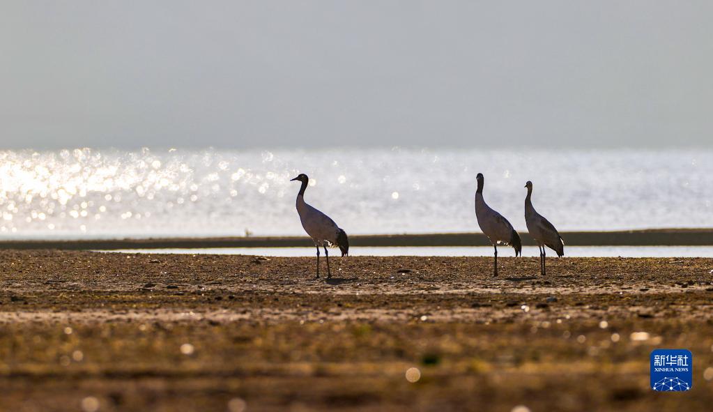 在林周縣虎頭山水庫拍攝的黑頸鶴(11月6日攝)。新華社記者 薑帆 攝