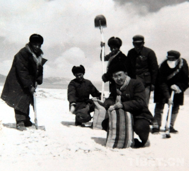 這是時任西藏自治區黨(dang) 委書(shu) 記熱地(後排戴圍巾者)到新成立的那曲地區雙湖辦事處(現那曲市雙湖縣)進行調研和考察(唐召明翻拍資料照片,1976年攝)
