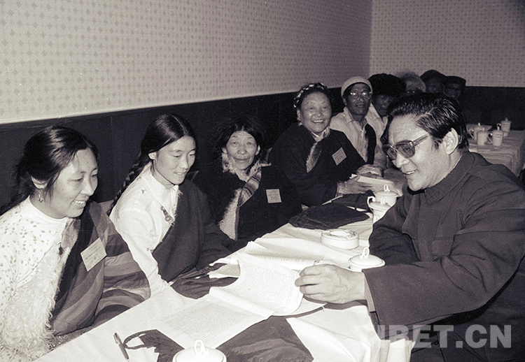 這是時任西藏自治區黨(dang) 委副書(shu) 記熱地(右)在與(yu) 人大代表進行交流。1988年1月15日至23日,西藏自治區第四屆人民代表大會(hui) 第六次會(hui) 議在拉薩召開(唐召明1988年攝)