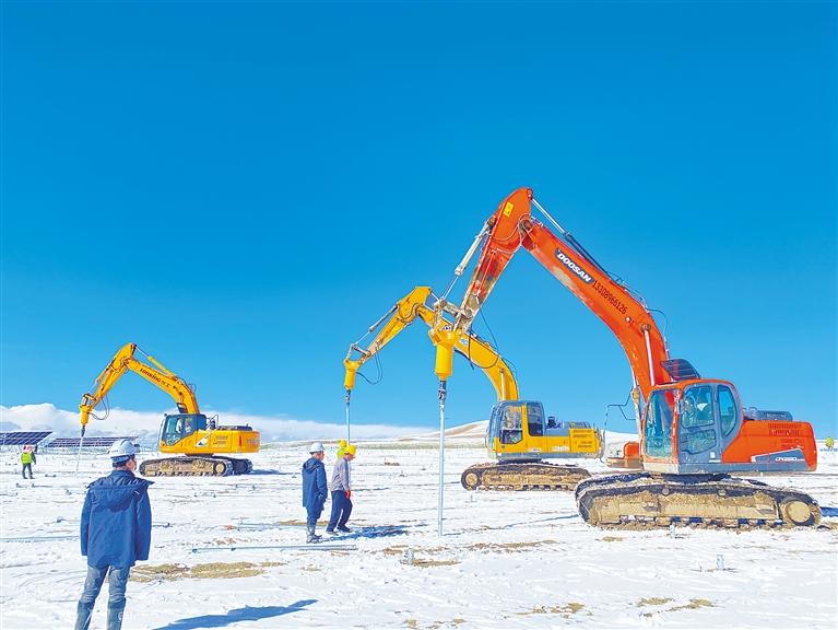 連日來,西藏最大光伏保供項目——華電那曲色尼光伏項目施工現場一派熱火朝天。該項目於(yu) 12月8日實現首批光伏組件並網發電。據了解,華電那曲色尼光伏項目裝機12萬(wan) 千瓦,是西藏今冬明春電力保供重點項目。